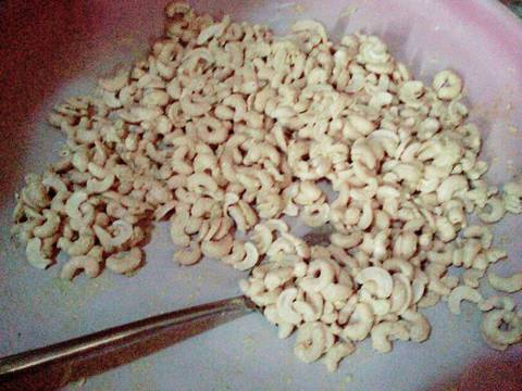 Campur ulekan bawang putih dan r*yco pada kacang mete hingga merata, biar kan 5 menit, lalu beri terigu aduk rata.